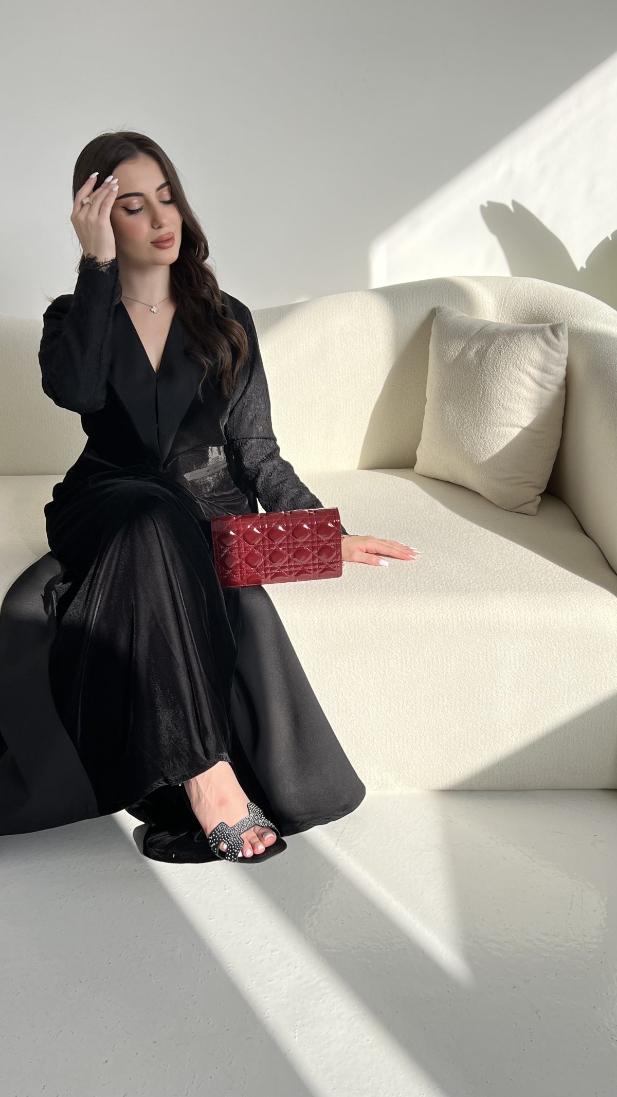قطعة العباية مخمل مدموج مع قطعة كريب